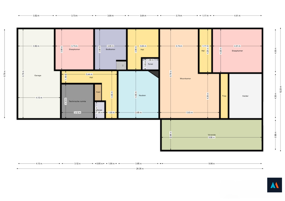 - Gevelbreedte 25 m